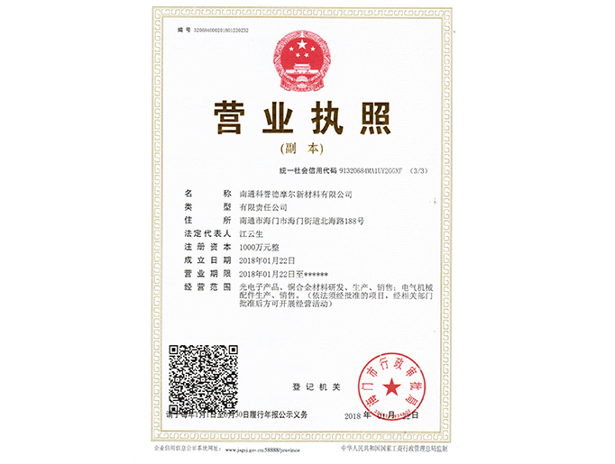 科譽德摩爾營業執照